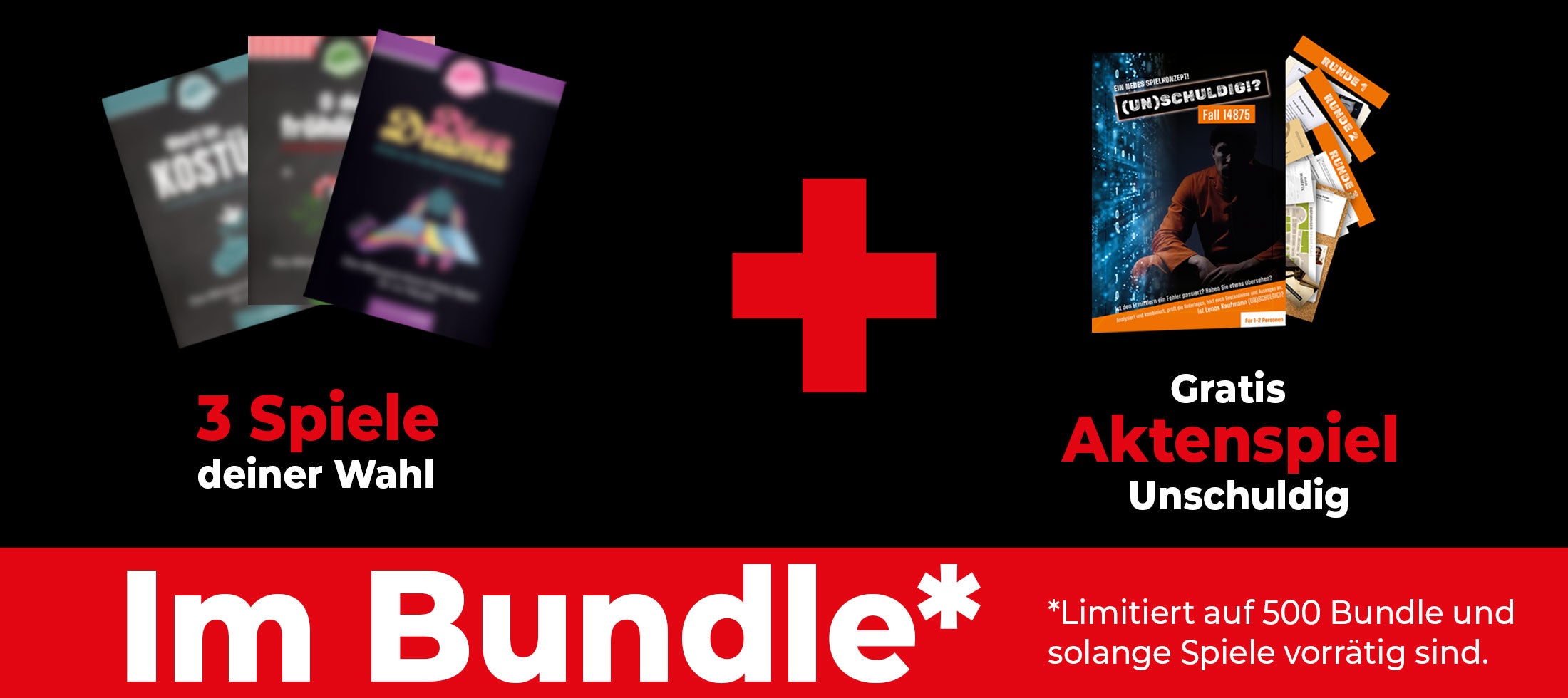 Wähle 3 Spiele deiner Wahl* – und sichere dir exklusiv ein Fallakten-Spiel kostenlos dazu!